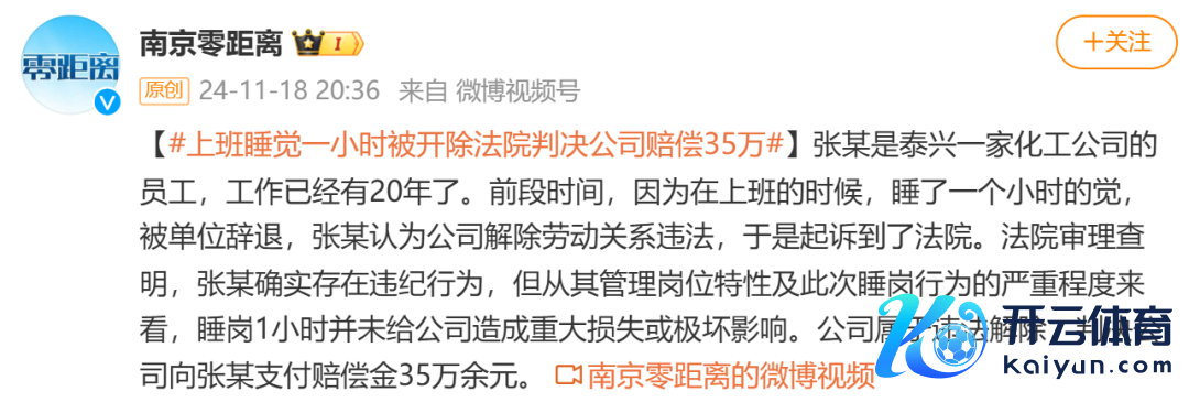 张某是江苏泰兴一家化工公司的职工,责任已有20年。本年开云官网登录入口,因为在上班时,睡了一个小时的觉被解雇,张某将公司告状到了法院。