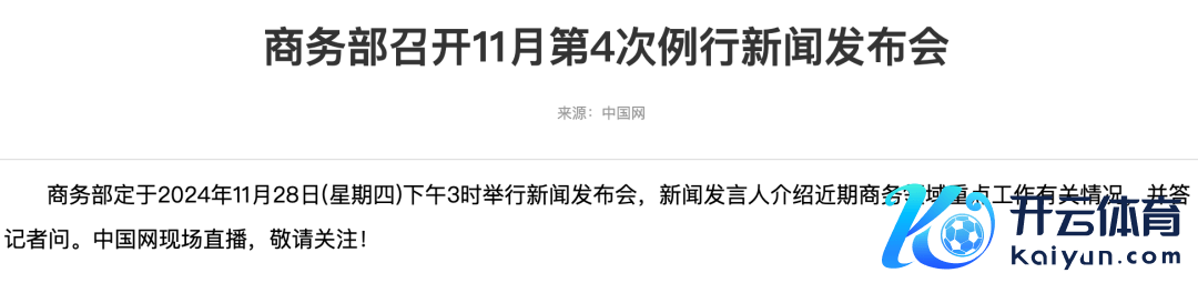 商务部定于2024年11月28日(星期四)下昼3时举行新闻发布会云开体育,新闻发言东谈主先容近期商务领域要点责任关联情况,并答记者问。