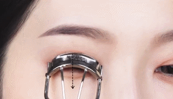 睫毛夹要尽量靠拢眼皮和睫毛根部,夹的宗旨交流向下/向右/向左。