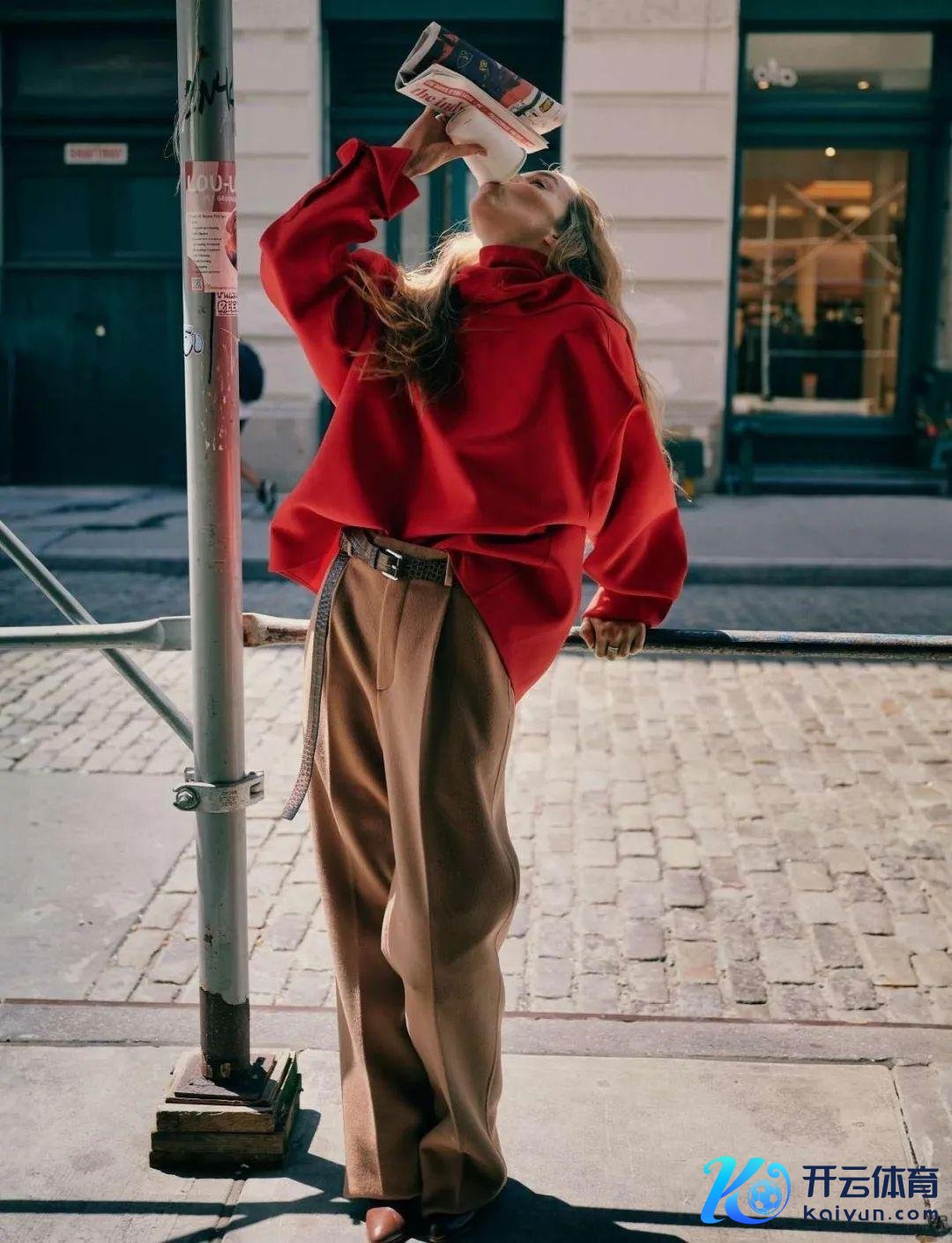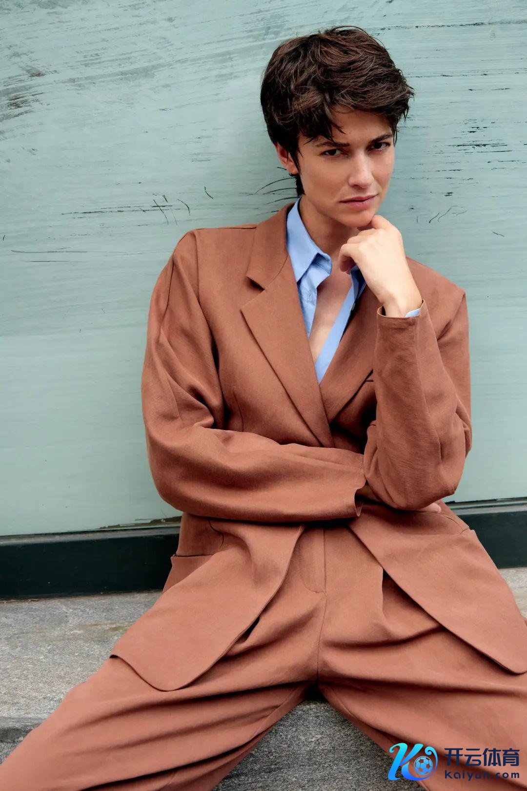这亦然一个念念路,操心这种颜料显暮气不衬气色,不错选自带活力感、中性风的单品去中庸,比如引导风卫衣,西装,穿搭念念路往酷的办法去靠。▼