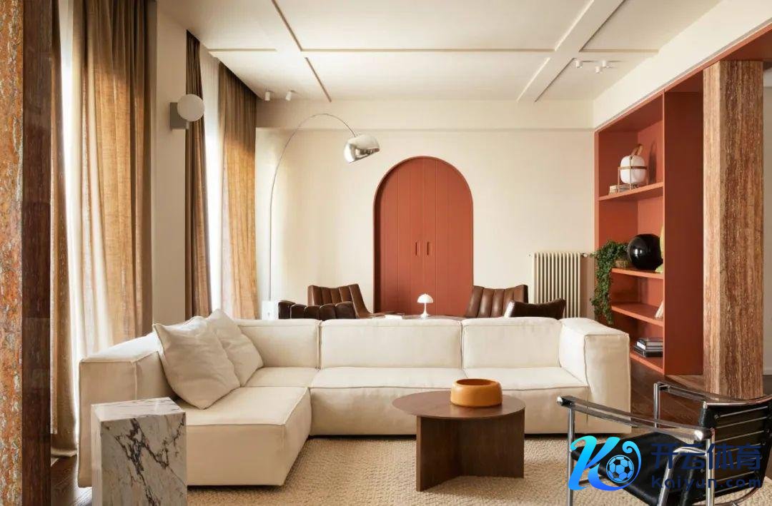 和脏橘、红棕、地面色系搭配在一齐尽头和解,用米白色算作过渡通盘房间会更亮堂。▼