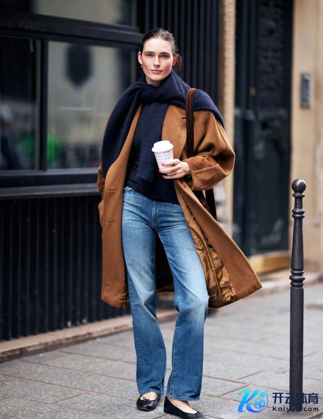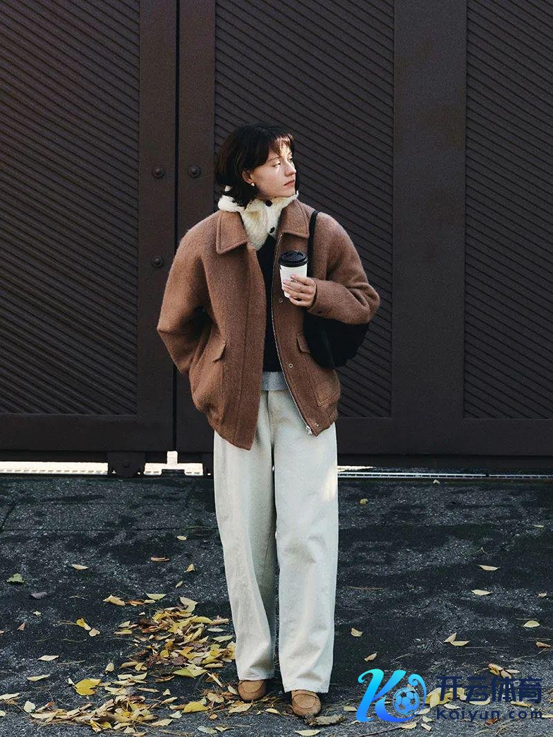 相比常见的搭配是棕色外衣+蓝色牛仔裤,挺相沿。▼