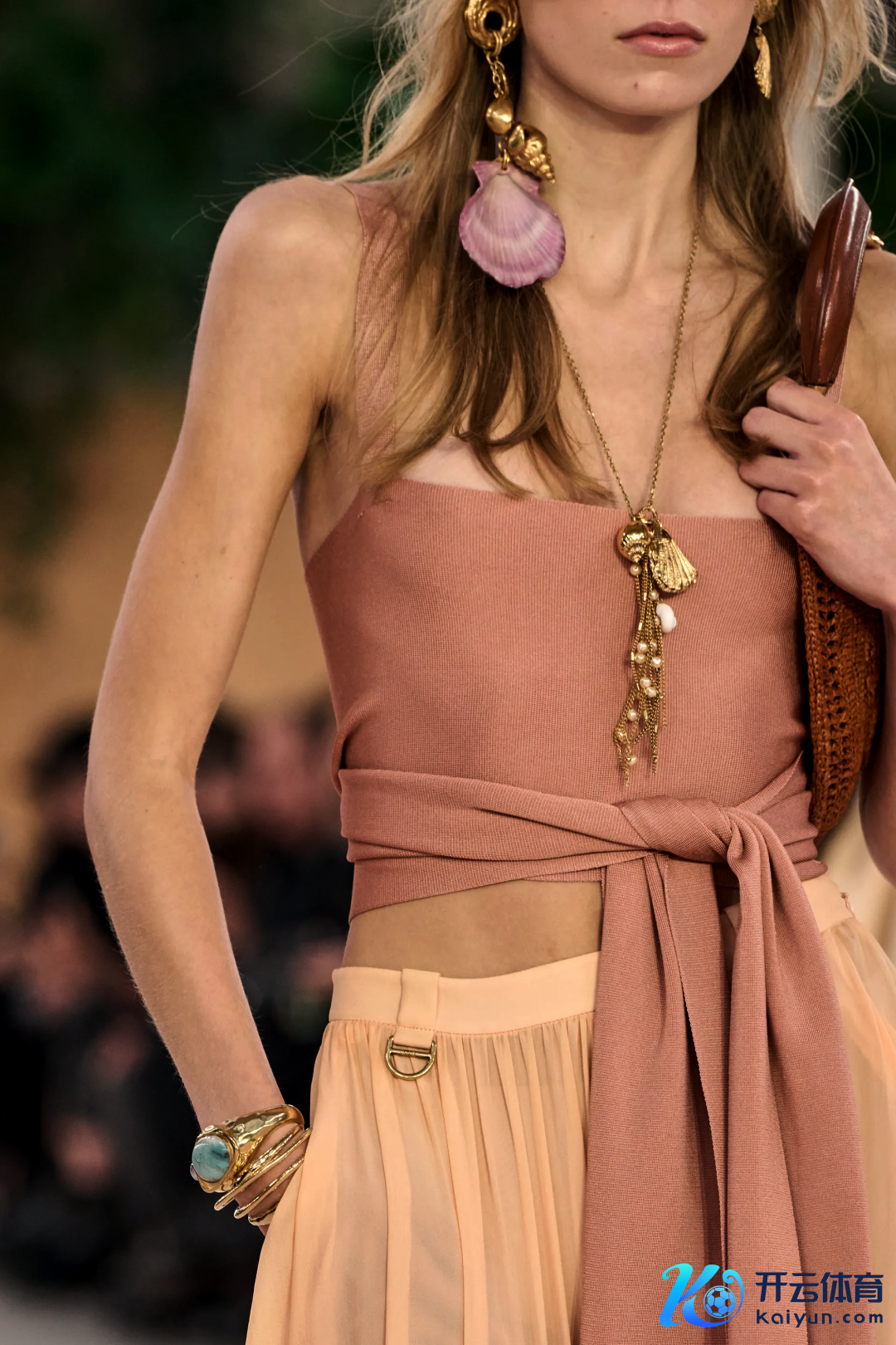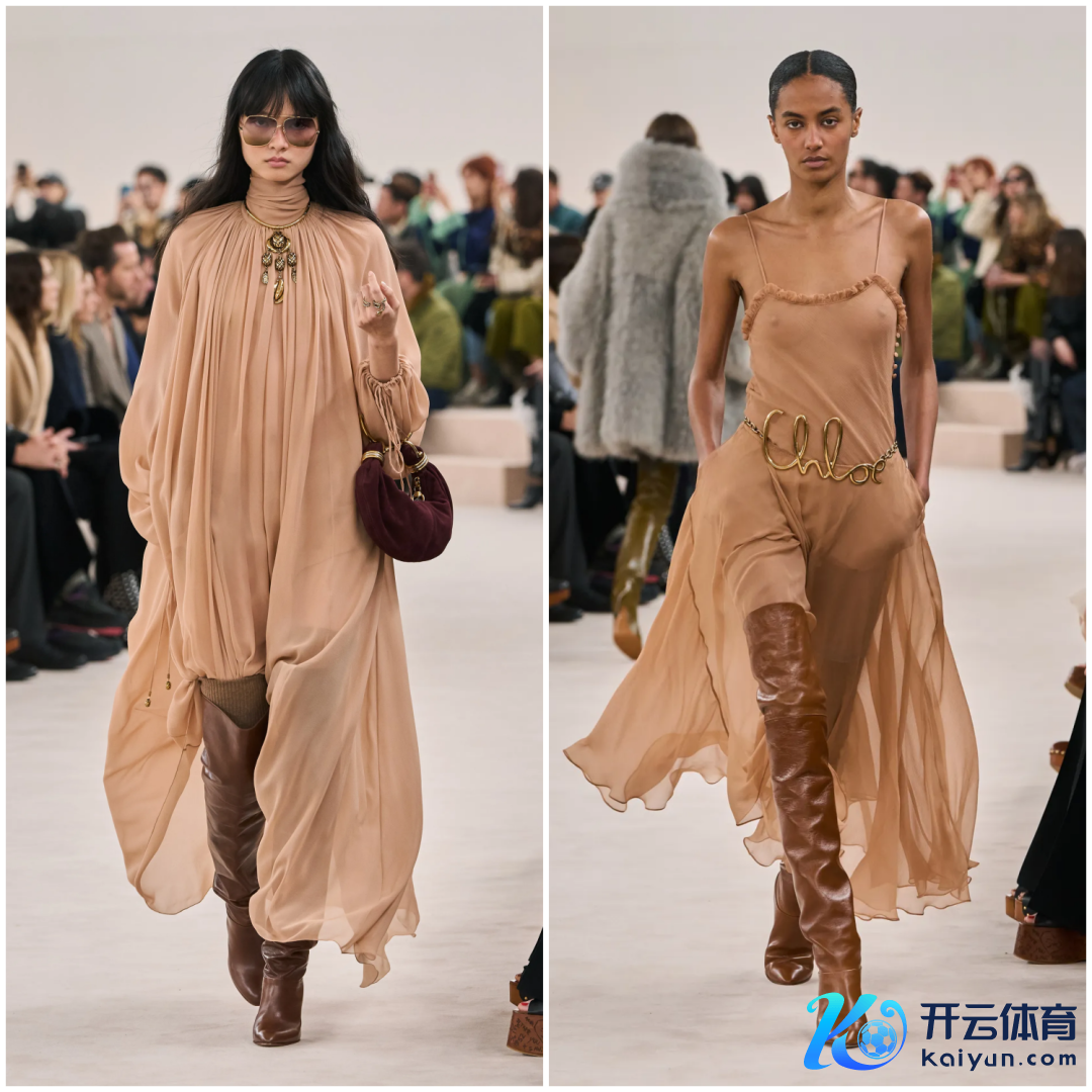 不错像Chole秀场造型这么,把更友好的灰粉色放在上半身。 摩卡棕皮质+裸色薄纱的搭配,放大了波西米亚的风情和通俗。 ▼
