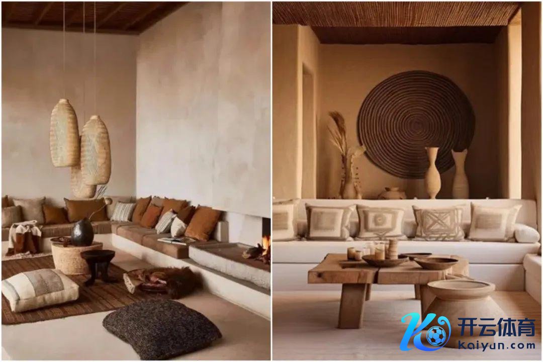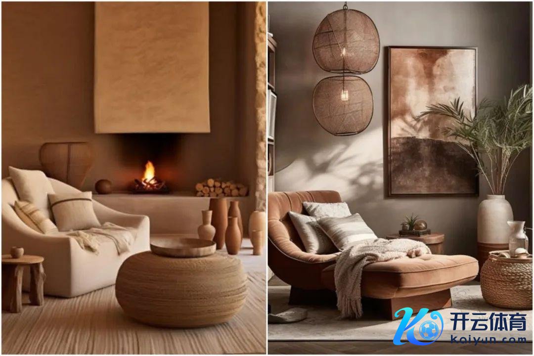 乍看有点像侘寂风,其实两者气质透顶不同,侘寂风敷裕度更低,举座更有“吃土”的质朴氛围;摩卡慕斯则调养许多。