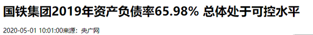 信源:国铁集团2019年财富欠债率65.98%总体处于可控水平 2020-05-01 央广网