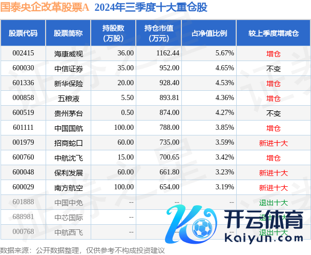 国泰央企修订股票A为股票型基金,凭据最新一期基金季报表示,该基金金钱成立:股票占净值比88.68%,无债券类金钱,现款占净值比10.31%。基金十大重仓股如下:
