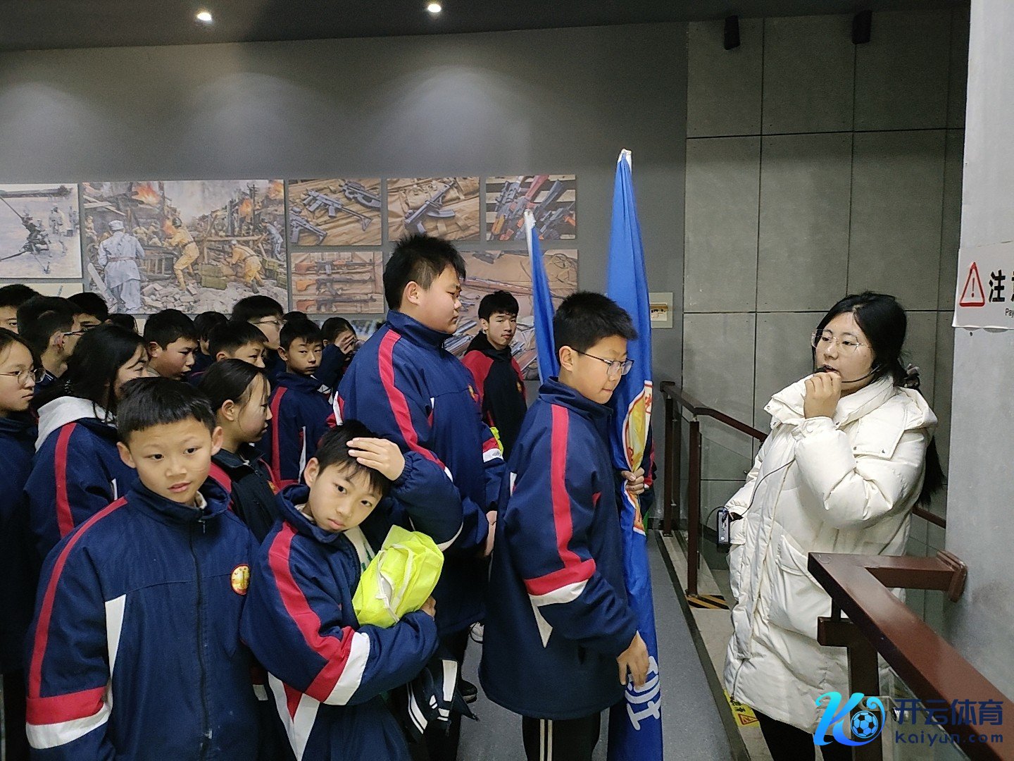为了让学生拓宽视线、培养爱国情感,2025年1月18号上昼,惠民县曙光践诺学校初中部组织学生治装待发,排着整皆的队列,在班主任憨厚的指挥下,各班级有序向着惠民县渤海翻新老区刀兵博物馆进发。