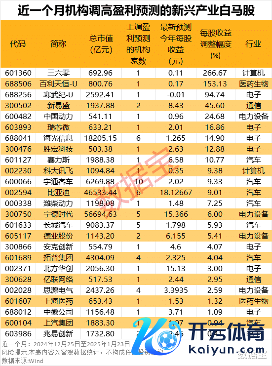 跟着2024年功绩预报插足尾声,在超500亿元市值的科技白马股中,近一个月获机构上调2025年盈利预测的个股有25只。
