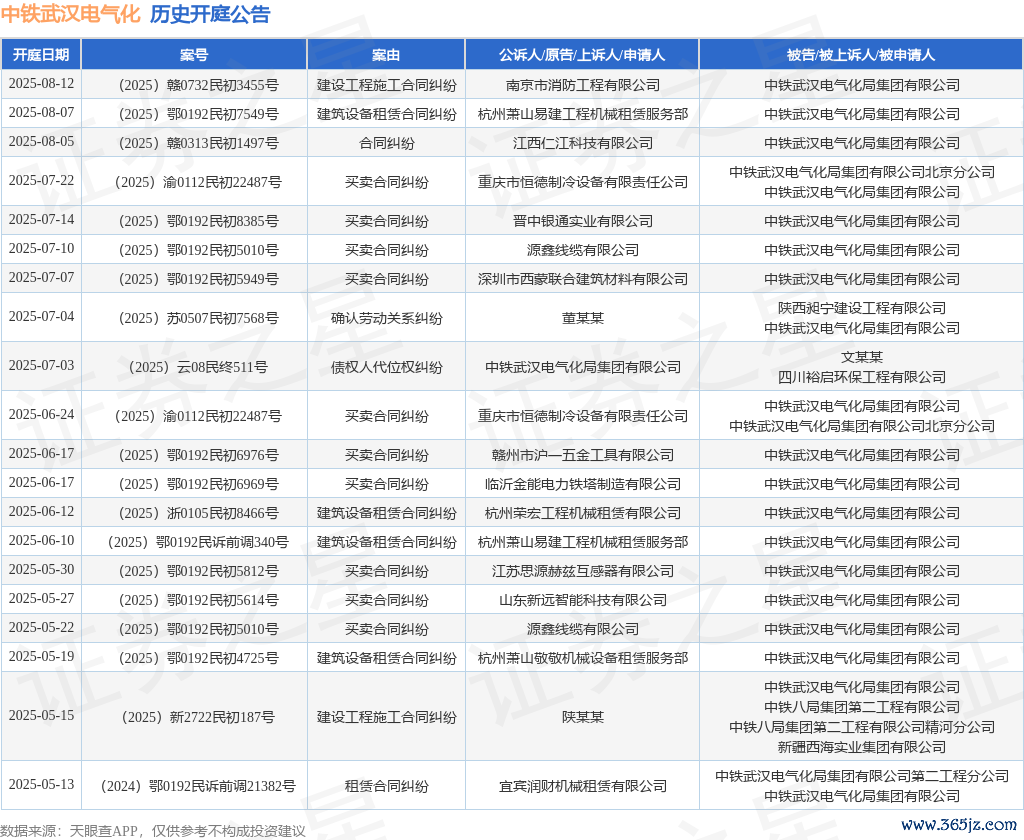 本站音讯开yun体育网,字据天眼查APP闪现,近日公布了一则中铁武汉电气化局集团有限公司行动被告/被上诉东谈主的开庭公告,详备执行如下: