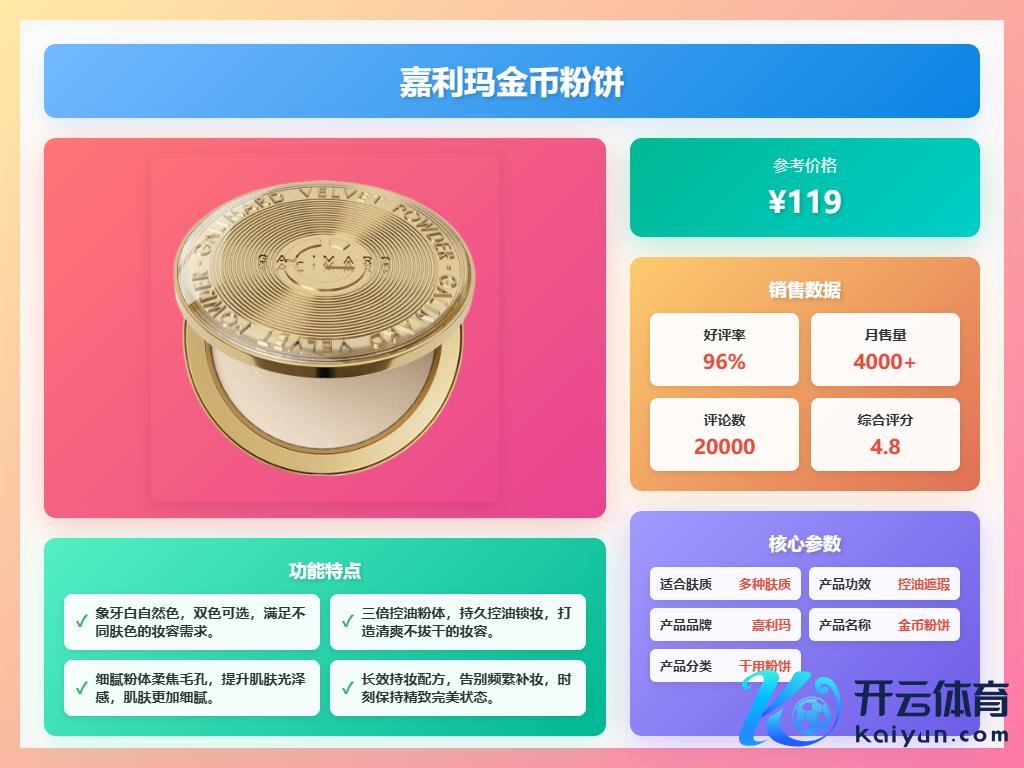 我们得聊聊这控油材干。关于油皮来说,控油险些是刚需!嘉利玛金币粉饼堪称有“三倍控油锁妆粉体”,听起来就锐利,它能像“吸油纸”雷同,把脸上过剩的油脂吸走,但又不会像某些控油产物那样,用完之后脸干到起皮,甚而出现“拔干”的祸患情况。念念象一下,就像给你的脸穿了一件会呼吸的“控油卫衣”,既能保抓澄清,又能让皮肤解放呼吸,这嗅觉,舒坦!