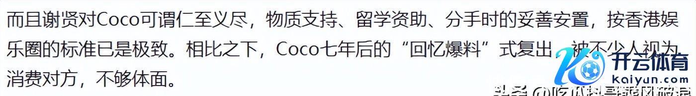 无论怎么讲,CoCo和谢贤在一都时,谢霆锋谢婷婷,以致张柏芝等等都莫得亏待过她,而今她公然上节目大爆和谢贤的私活命,属实不尊重这段坚捏了十二年的方法。