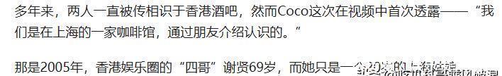 CoCo曾自爆当时辰谢贤虽已69岁,可仍有男人汉气概,是她主动围聚了谢贤,作念了谢贤的女一又友。