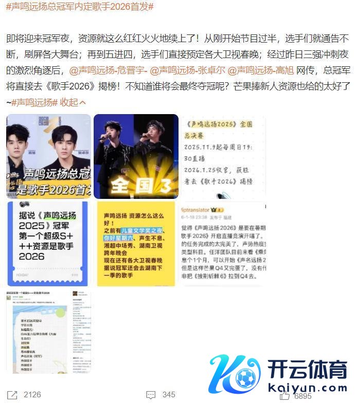 当“声鸣远扬总冠军内定歌手2026首发”话题登上热搜,默默的网友暗意:《声鸣远扬2025》的冠军来录制《歌手2026》,是思让番邦选手看见笑吗?毕竟马嘉祺录制《歌手2025》的时候,曾引起弘大的争议。