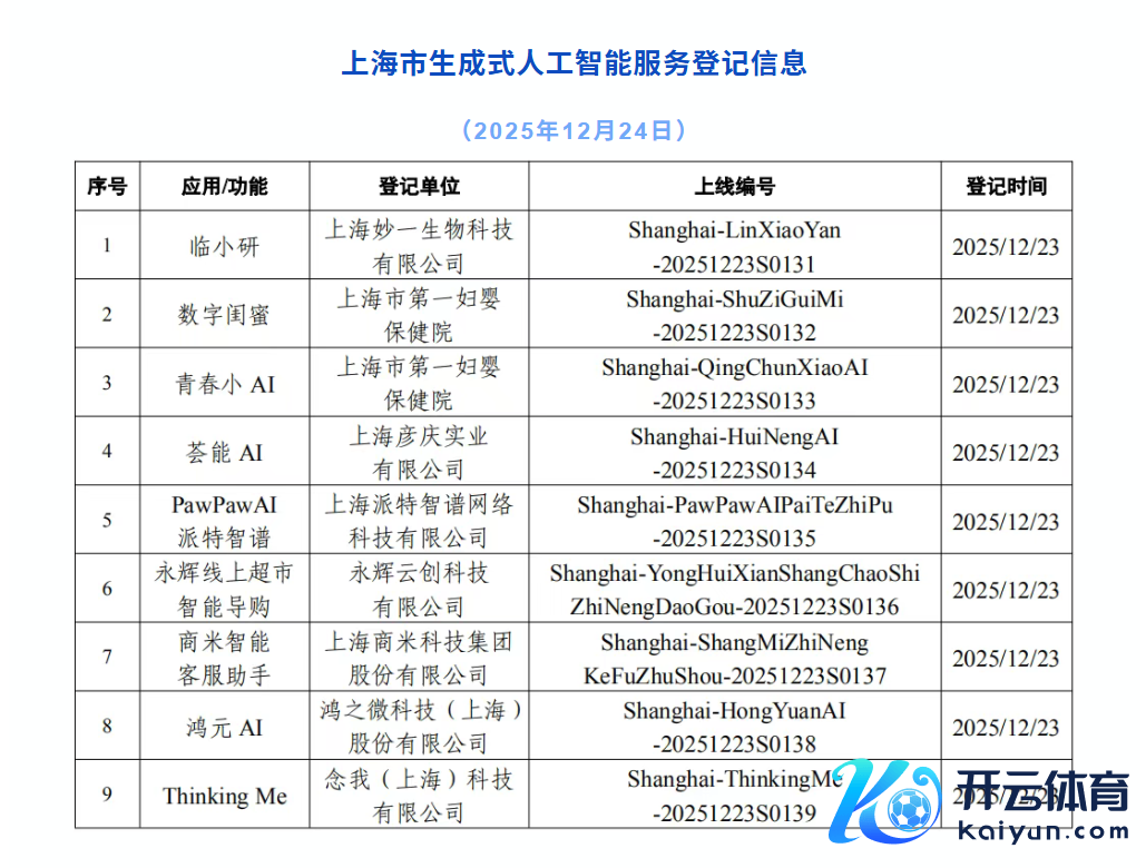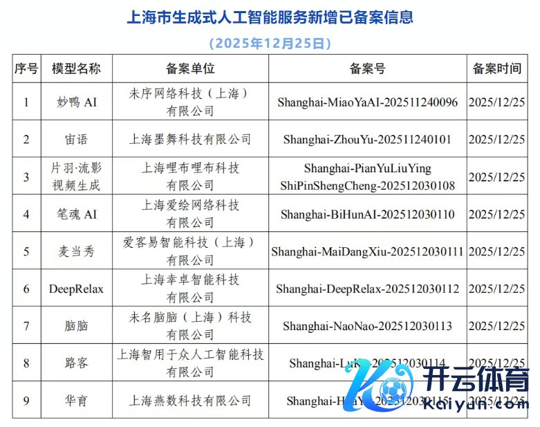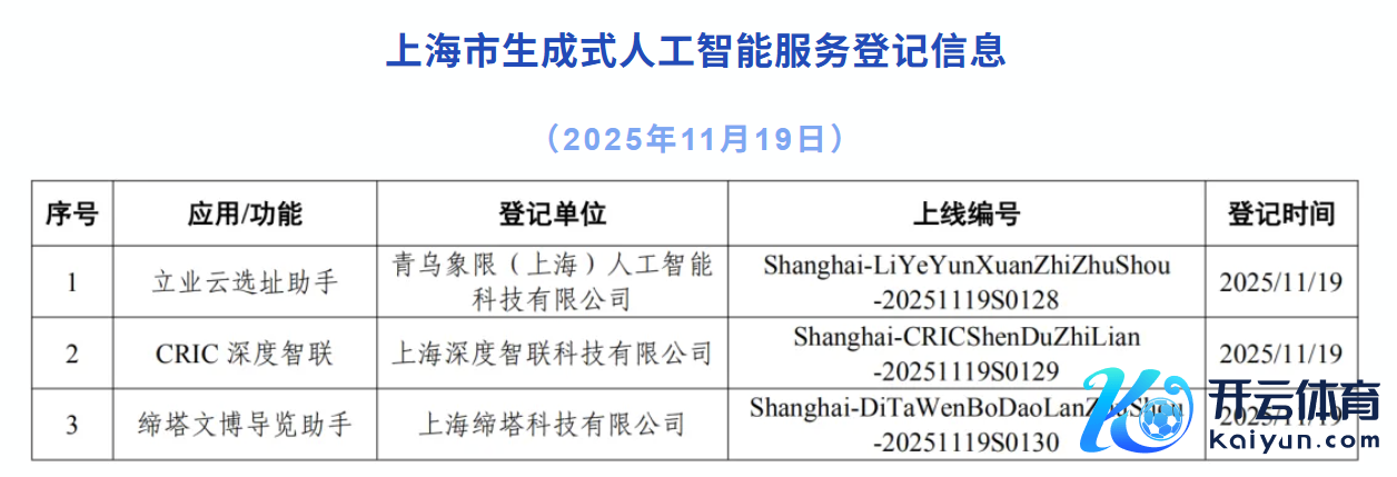 上海市新增3款已完成登记的生成式东谈主工智能奇迹开云体育上海市新增3款已完成登记的生成式东谈主工智能奇迹