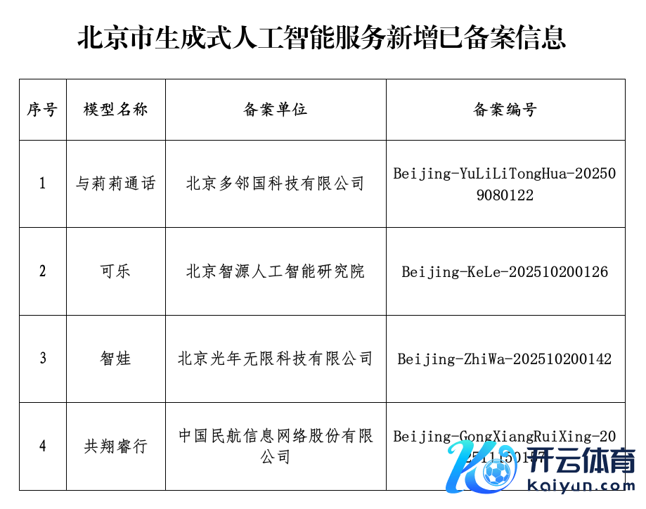 死字12月31日,北京新增4款已完成备案的生成式东谈主工智能奇迹死字12月31日,北京新增4款已完成备案的生成式东谈主工智能奇迹