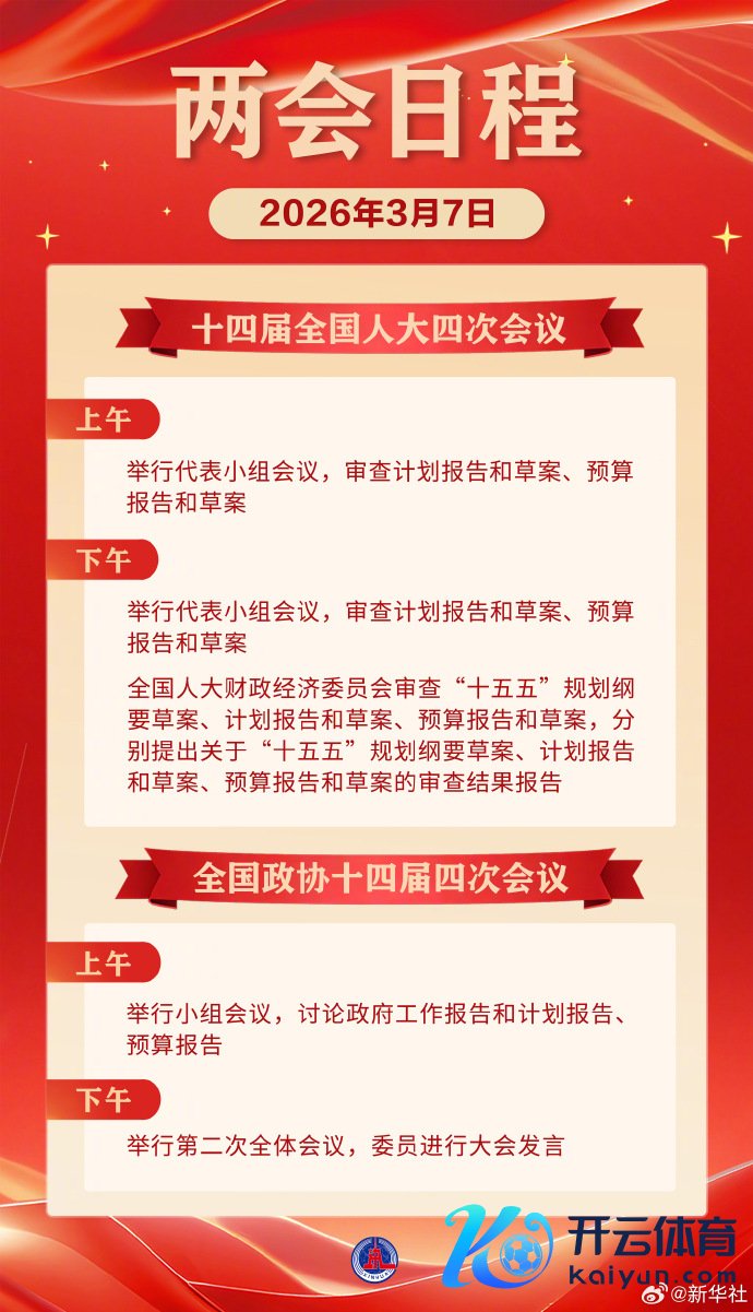 两会日程预报丨3月7日:东说念主代会审查策画、预算论述 政协举行第二次整体会议云开体育两会日程预报丨3月7日:东说念主代会审查策画、预算论述 政协举行第二次整体会议